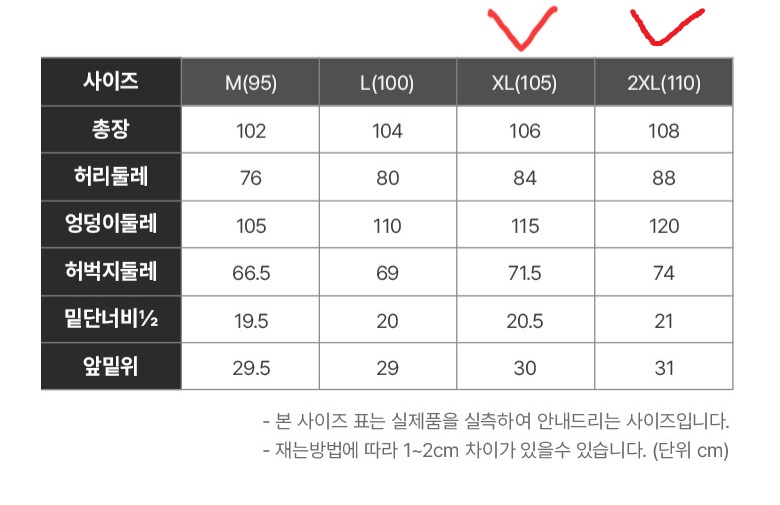 사이즈 XXL (평소 36 입으시는 남성분께 추천)