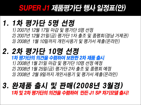 9. 평가단 특전 - 1차 평가 제품 무상 증정 - 2차 평가단(2008년 1월 예정) 10명 선정시 우선 위촉 (1차 평가 자료가 무성의할 경우 2차 선정에서 제외될 수도 있습니다.)