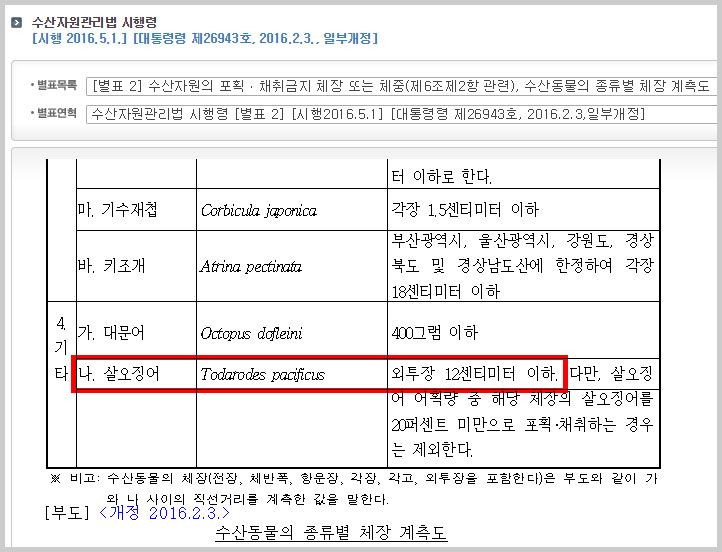 ★ 살오징어 금지체장 안내