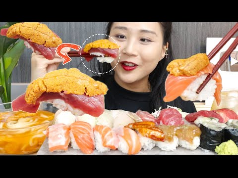 MUKBANG) 두꺼~운 모듬초밥 리얼사운드 먹방+성게알