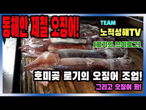 오징어 그물 조업 그리고 오징어 회썰기!