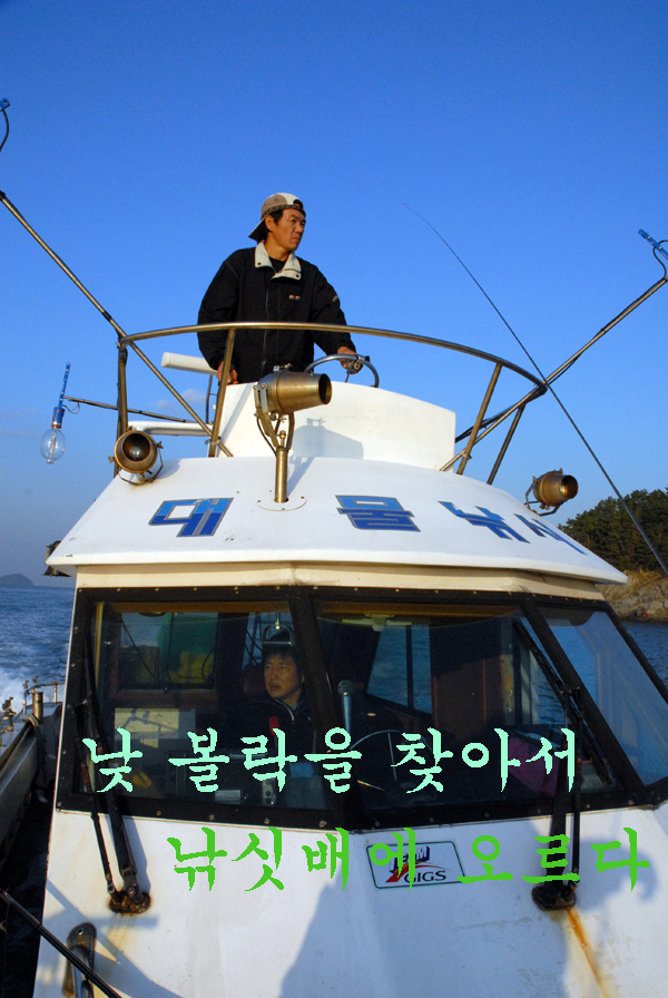 11월 초 삼천포를 찾은 취재팀은 주말을 이용해 삼천포 대물낚시 배창석 선장의 배에 동승하게 되었다. 낮에 피는 볼락을 찾아 ‘배치기’를 해 보겠다는 작정이었다. 아직 미끼를 잘 먹지 않는다는 배창석 선장의 말을 듣고 다소 실망하기도 했으나 지난 번 욕지도 갯바위 낮볼락 취재 때와 마찬가지 상황이니 어차피 담궈 보지 않으면 모른다는 생각으로 밀어붙이기로 했다. 또한 이 자리에는 삼천포의 볼락 명인 ‘돌뽈래이’님과 뽈래기 사랑의 실력자 창원 ‘곽조사’님이 동참해 주었기 때문에 적어도 ‘황’ 칠 일은 없겠다는 계산도 있었다.