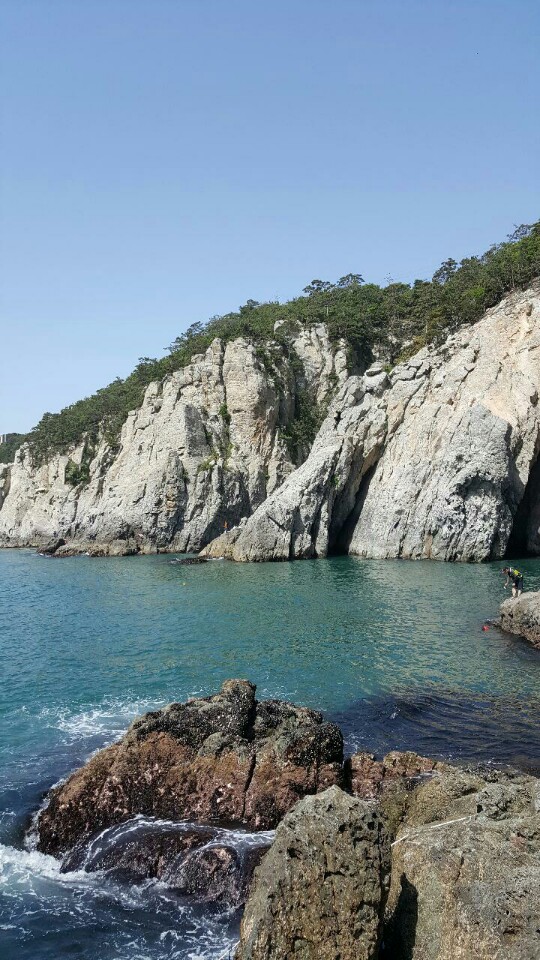 (대 접을까 말까하는데 해녀분의 물질..물어봤죠 아주머니~~ 안에 고기 있던가요? 해녀분이 바닥에 밑밥은 보이는데 고기는 없답니다 밑밥 어지간히 뿌리라카네요 압맥이 온천지에 널렸다네요..)