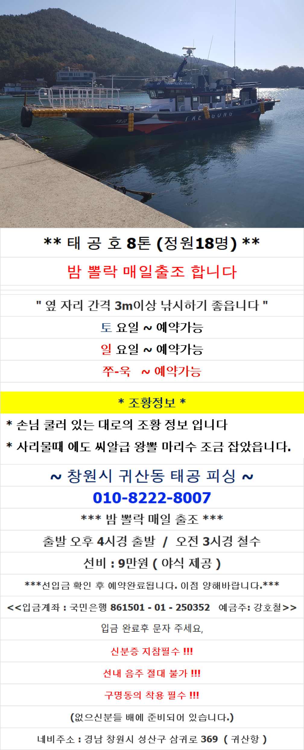 ** 태 공 호 8톤 (정원18명) **