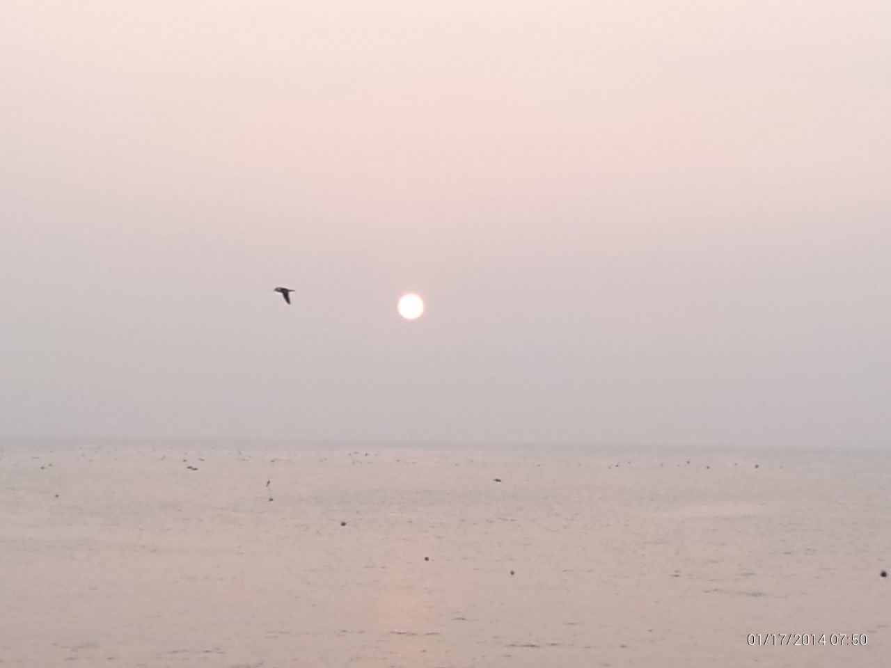 잿빛 하늘 아래 햇살이 조금은 외로워 보이는 바다는, 바람과 파도가 전혀 없는 조용한 아침 입니다.