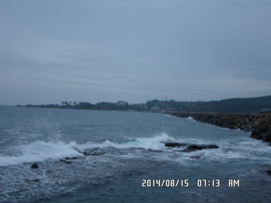 오락가락하는 비는 쉼없이 내리고 바람은 없으며, 너울의 움직임이 제법 많이 남아있는 아주 흐린 아침 입니다.