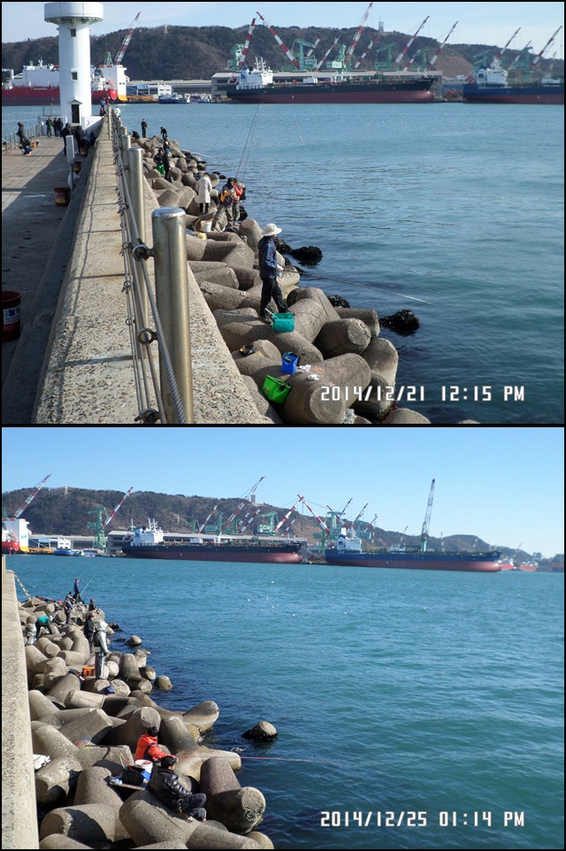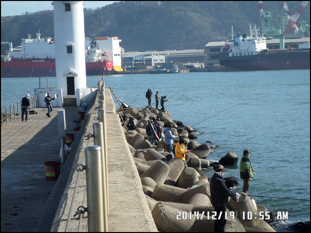 태화강물과 바닷물이 만나는곳 장생포항구 조건은 매우좋으나 조황은 별로입니다^^