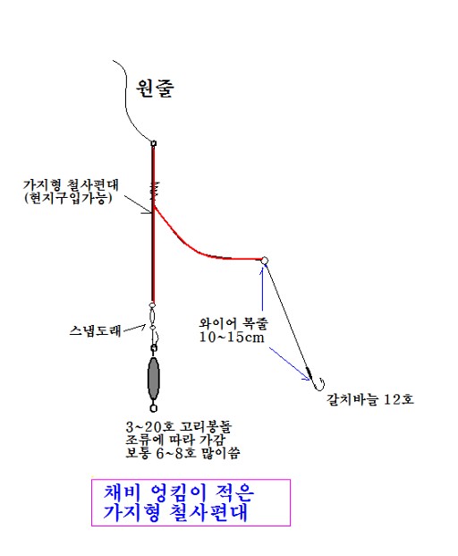 미끼 떨어지면, 잡은 칼치 포 떠서 폭 1cm 미만 정도로 잘라서 사용 (잘 물어줌)