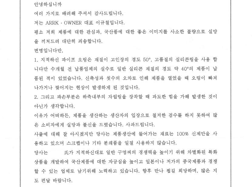 충분한 테스트를 하고팔아야되는게 기본적인 상술일진데 몆번만 사장이하직원이 낚시가면 알텐데 무책임합니다.